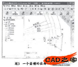 在solidWorks中插入自由端點曲線,調用此漸開線上型值點的坐標文件,可生成齒輪輪廓的漸開線曲線。用上述方法生成一段模數m=2、齒數z=21的直齒圓柱齒輪的漸開線齒廓,結果如圖2所示。