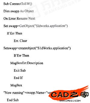建立SoliidWorks和Visual Basic之間的通訊過程的代碼如下: