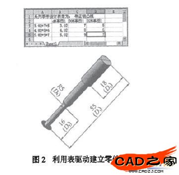 (3)點擊菜單"插入一系列零件設計表",出現EXCEL表格.點擊模型上需要參數化的尺寸,尺寸名稱進入表格,輸入另外2個模型的數據,即可完成導正銷的建庫。