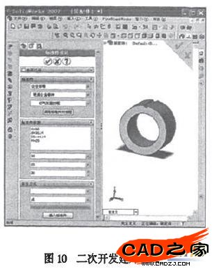 SolidWorks通過OLE/0CM技術為用戶提供二次開發接口API。包括了數以百計的功能函數,所有的函數都是有關對象的方法或屬性,涵蓋了所有SolidWorks的數據模型,通過這些對象屬性的設置和方法的調用。用戶可以在自己開發的DLL中實現與SolidWorks相同的功能。以VC為平臺。通過日瀏表進行任意標準零件建庫的程序框圖如圖8所示。