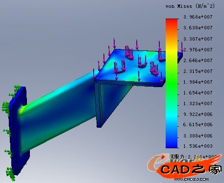 在模型網格化成功后,運行分析軟件,得到三組不同的數據。我們依照這三組數據來判斷零件是否符合設計的條件并加以改進。