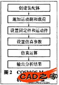 采用COSMOS Motion的機(jī)構(gòu)仿真步驟如圖2所示。