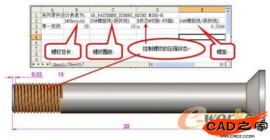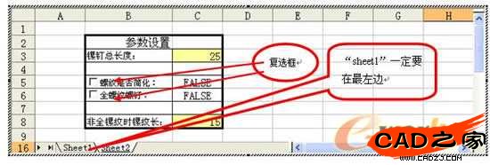 公式意義:螺釘總長尺寸與Sheet2上的C3單元格數(shù)值相關(guān)聯(lián)