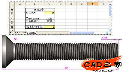如果沒有選中此復(fù)選框,則按Sheet2上的C8單元格數(shù)值設(shè)定螺紋圈數(shù)(手動(dòng)設(shè)定時(shí)如果設(shè)定的數(shù)值超過全螺紋的螺紋圈數(shù)時(shí),按全螺紋的圈數(shù)更新模型)。