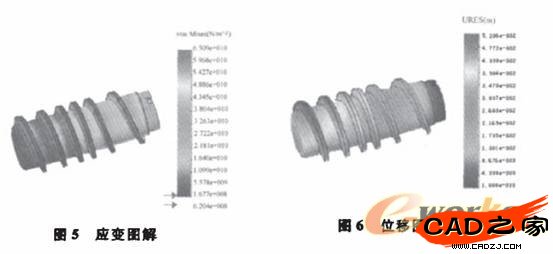 螺桿工作時螺桿在與驅(qū)動軸配合聯(lián)接處受到徑向約束,止推軸肩處受到軸向約束,即螺桿的右端面X.Y,Z方向的位移約束均為O.所以約束類型選
