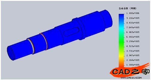 S-N曲線顯示,當周期為1e6時,交替應力為102MPa,由于靜態下得到的應力值為86MPa,所以理論上45號鋼材質的傳動軸的壽命是無限的。