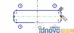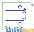 此次是在中心線的一邊畫一個孔之后通過使用鏡像工具在另一邊生成對稱形狀。