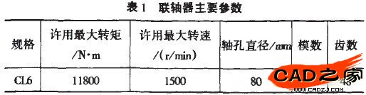 3.2.1 聯(lián)軸器數(shù)據(jù)庫技術(shù)CL6型號(hào)齒式聯(lián)軸器的部分標(biāo)準(zhǔn)數(shù)據(jù)如表1所示。