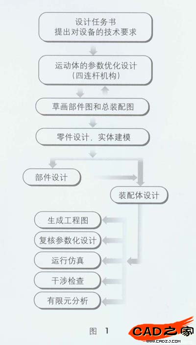 因此,破碎機的三維設(shè)計采用自下而上的設(shè)計方法,流程如圖I所示。