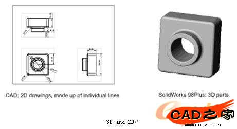 你可以畫出 3D 效果的零件圖,而不是二維的圖紙。你可以用這些 3D 零件生成二維的圖紙和三維的裝配圖。