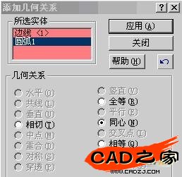 ①添加幾何約束對話框出現(xiàn)。