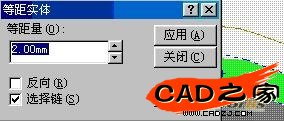 5、設(shè)置等距量為2mm,顯示向外偏置。注意偏置方向,如果方向不正確,選中"反向"標(biāo)簽
