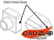 1、選擇其中一個(gè)零件的一個(gè)面,然后,按住CTRL鍵,并點(diǎn)擊另一零件的相關(guān)的面。如圖