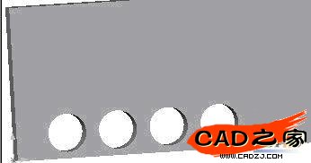 首先按下圖做一個(gè)拉伸零件,10mm厚。一個(gè)打有一個(gè)圓孔的矩形。注意:做成兩個(gè)特征。孔一定要作為單獨(dú)的特征。
