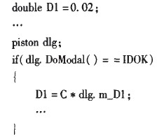新建柱塞參數(shù)化建模對話框如圖4所示,并添加輸入數(shù)據(jù)編輯框。打開ClassWizard,創(chuàng)建新的對話框類,添加成員變量,將各尺寸輸入編輯框賦予變量名稱。如將D1編輯框添加為double類刑的變量m—D1。