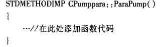 打開Visual C++6.0,新建所需的插件工程,添加插件菜單和函數(shù),可自動(dòng)生成函數(shù)框架,只需添加相關(guān)函數(shù)代碼,運(yùn)行即可實(shí)現(xiàn)插件功能。如添加函數(shù)paraPump,則生成函數(shù)框架: