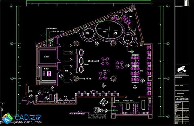 4百平米洗浴中心室內裝修CAD施工圖附效果圖