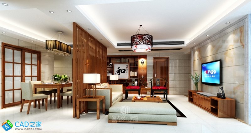 一套四室兩廳現(xiàn)代中式效果圖、平、立、剖全套施工圖