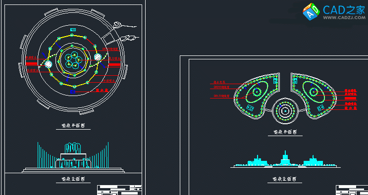 噴泉設(shè)計(jì)施工CAD平面立面圖