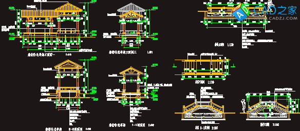 船舫休息亭廊和拱橋施工CAD詳圖
