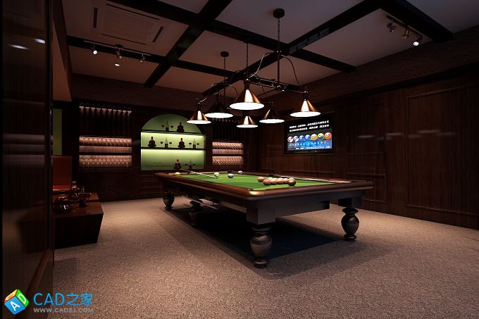 臺球會所CAD設(shè)計施工圖+效果圖下載