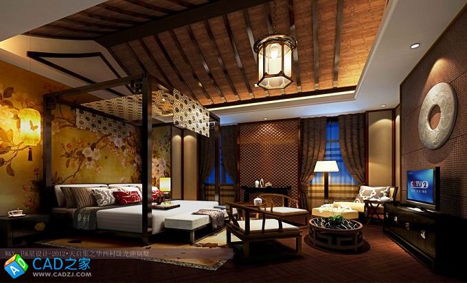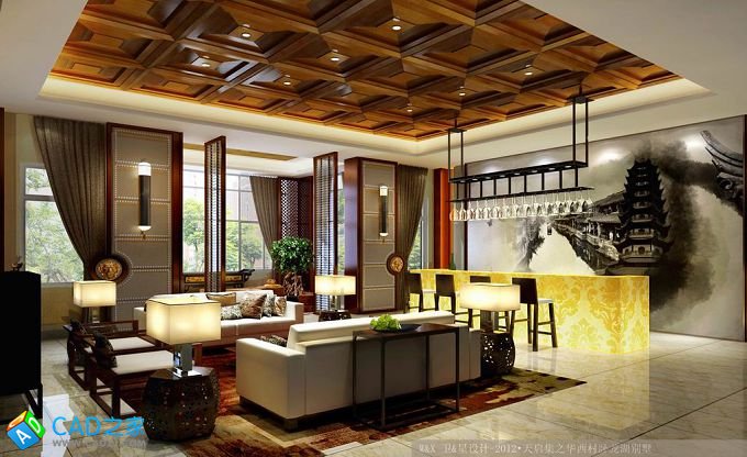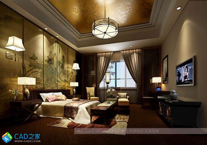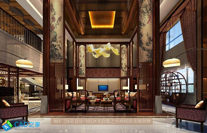 華西村臥龍湖現代中式別墅全套施工圖+效果圖