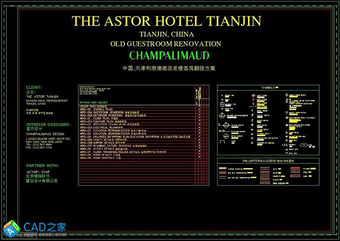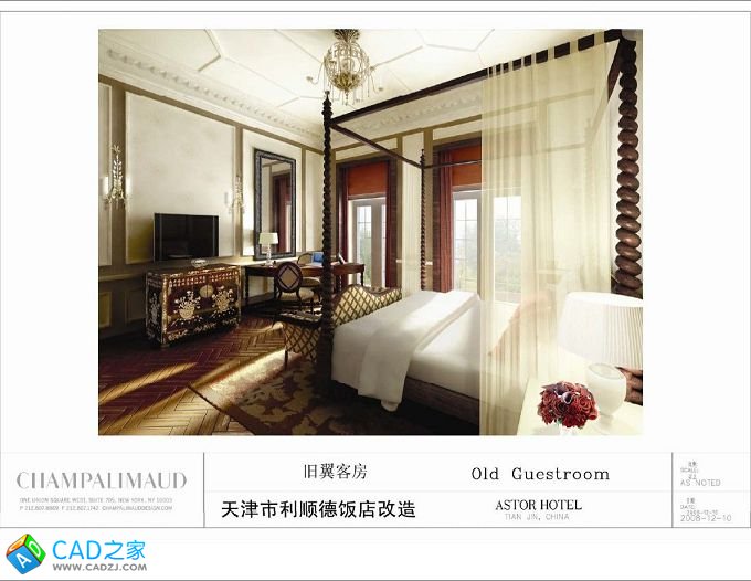 天津利順德酒店樣板間CAD施工圖+效果圖