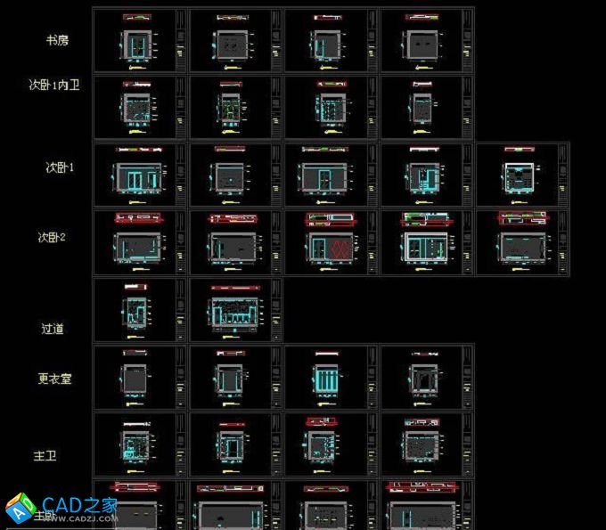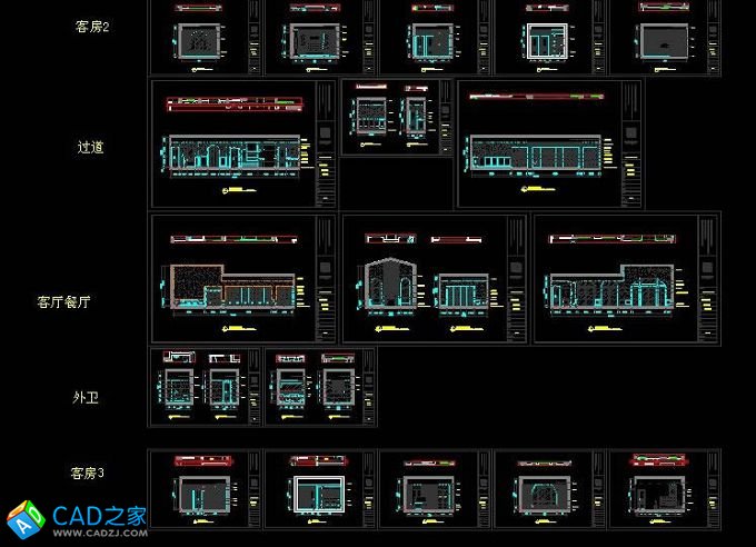 施工圖內容: 三層別墅,平面 天花,地面,拆墻砌墻,燈具,開關等平面,還有所有房間的立面圖