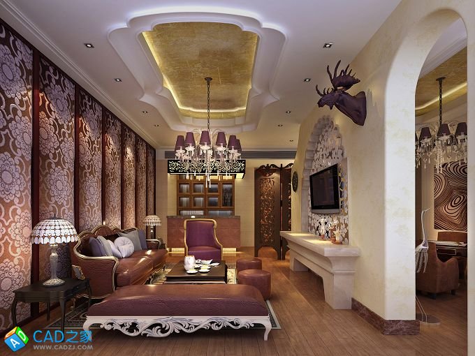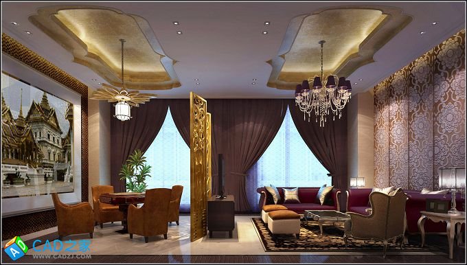 某酒店四層休閑茶樓施工圖及高清效果圖下載