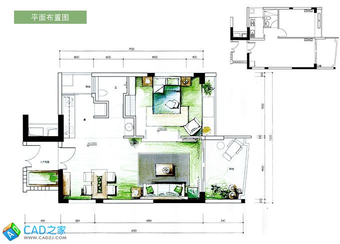 三亞53㎡綠色東南亞風情小戶型施工圖含效果圖