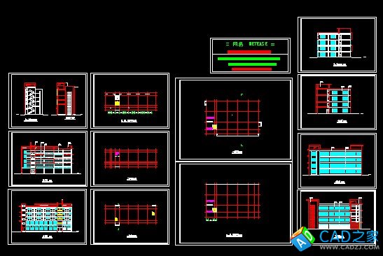 某廠房修理車間建筑施工圖(含效果),包括剖面圖,南立面,三、四、五層平面,西立面,二層平面,東立面,一層平面等,供各位參考