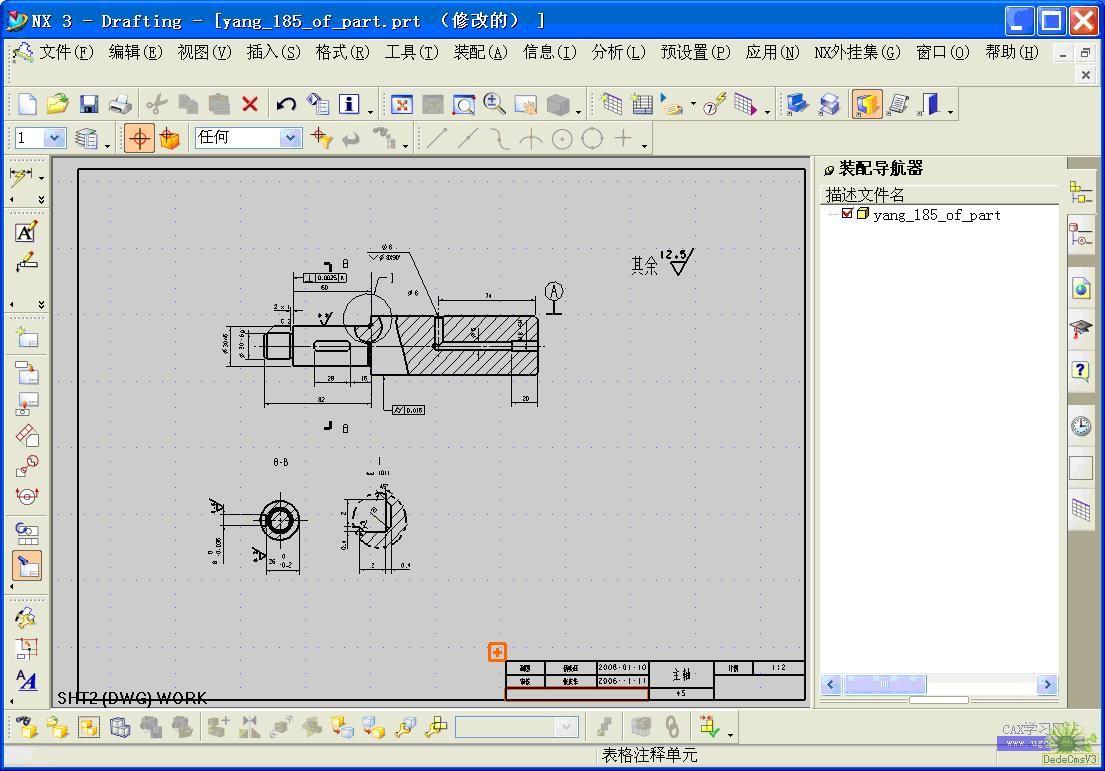 1. 圖紙做好后,打開導航器,將導航器左上角點變成鼠標狀,使導航器固定,拉伸導航器邊界,使其盡可能接近圖紙邊界(虛線狀片體),使片體右上角距窗口邊界(上、右)距離相同。