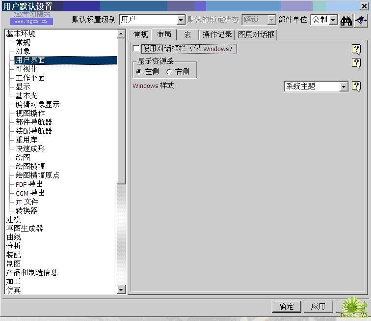 確保和圖中特別標示出的項目完全一致后點擊 應用,退出NX5.0(必須步驟),重新進入NX5.0