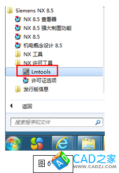 第六步:設置許可證,在開始-程序-siemens nx8.5 目錄下找到 NX許可工具,打開LMTOOS,如圖6-1所示: