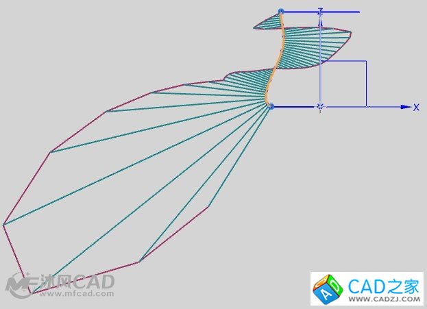 如圖所示會顯示出比較雜亂的曲率梳,然后用鼠標左鍵選中創建樣條曲線的關鍵點,調節曲率梳,以得到比較光滑的曲線,從而創建出高質量的曲面。