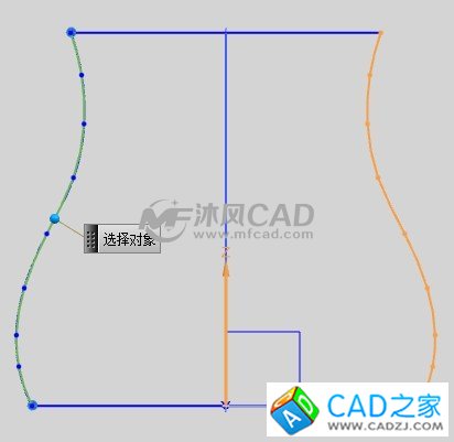 調節出的結果如圖所示,然后使用【鏡像曲線】命令將創建好的樣條曲線進行鏡像。
