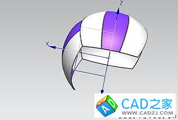 第六步、對(duì)三個(gè)曲面進(jìn)行加厚處理,加厚2mm,法向朝外。然后,對(duì)曲面體進(jìn)行邊倒圓,倒圓半徑為0.8mm。同時(shí),對(duì)三個(gè)曲面進(jìn)行著色。見(jiàn)下圖。