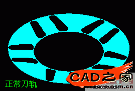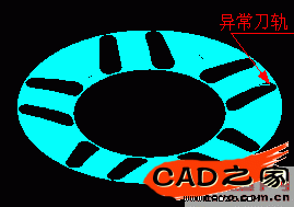 兩種后處理的結果是一樣的,給人的感覺是用MOM比較省事一些,因為它直接將刀軌轉換成NC程式,不用再輸出CLS文件,不過在處理時間上較GPM長一些。另外用GPM處理比較安全一些,至少本人在使用過程中未遇到過問題,但是用MOM處理卻出現了多次撞刀、過切現象。這是由于利用MOM處理時, Event Handler(擴展名為.tcl)文件設置不當造成的。這種故障在編制加工程式時很難被發現,因為在ug里面根本檢查不出來,必須借助軟件將NC程式轉換為刀軌才可以發現問題所在,下面是個例子: