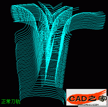 如上述轉換后的刀軌我們可以看出來如果不是刀具撞斷,那么切削將會繼續!糾正后的刀軌如圖四,這也是由于后處理文件的不當造成的。