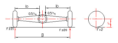 式中k為動載荷系數。對于轎車,k取1.75;對于貨車,k取2.0;對于越野車及拖拉機等,k取2.5。Yq是作用在前橋殼上所有垂直方向的載荷。