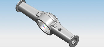 該建模的關鍵是兩側變截面部分:以前橋殼前后對稱中心和左右對稱中心的交點作為坐標原點,先后算出一側兩個典型截面的特殊點坐標,分別畫出兩截面草圖;再用【插入】︱【自由形式特征】︱【直紋曲面】;殼體的中間部分可以用【插入】︱【成形特征】︱【回轉】得到兩連接法蘭端,也可用【插入】︱【成形特征】︱【圓臺】得到;最后一起抽殼便可完成。