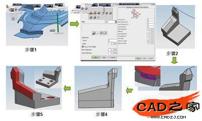 3. 型面的設(shè)計(jì)和更改只需將型面部分進(jìn)行替換,操作更簡(jiǎn)便。用基礎(chǔ)模塊設(shè)計(jì)型面模型后,如果需要更改,需要將修改的實(shí)體部分剪切掉,再生成新的實(shí)體進(jìn)行布爾運(yùn)算。以往常會(huì)出現(xiàn)無(wú)法剪切或是不能進(jìn)行布爾運(yùn)算,甚至使相關(guān)的實(shí)體發(fā)生意想不到的變化,而Die Design模塊則解決了以上問(wèn)題。