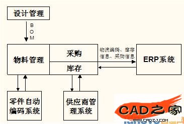物料管理分為物料采購管理和物料庫存管理。物料管理系統接收來自設計管理系統的BOM,通過自動編碼系統,將模具材料清單進行分類編碼,將零件分為標準件、庫存零件和采購物料,將零件名稱數字化、代碼化。并將編碼結果分送到采購管理系統和庫存管理系統。采購管理系統自動查尋庫存狀況,生成采購清單和領料單。通過與ERP系統數據共享,對庫存、采購狀況等進行管理。物料管理系統結構,如圖2所示。