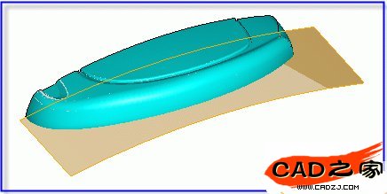 然后看局部和過度,(3)的面初步猜測應該是頂面offset一定的距離生成,至于是否有呆后面的驗證。(5)面仔細觀查會發現和頂面并非一個面,所以需要另一個掃出面來擬合。(6)面比較難點,是個典型的過度,從頂部的級差過度到側面的消失,在目前來看可能的做法是作消失面,或者倒圓角(是否覺得不可思議?這里的判斷需要建立在想像和經驗上)。后面你會看到這個看似復雜的過度居然真的就可以用圓角搞定。(4)面什么難度,兩個軌跡的可變掃出就可以輕松搞定。下面我們就開始動手了。不管形狀如何,我想分型輪廓線應該是我們的工作的第一步。所以我們先作分型面,對于這個實體來說,分型面比較簡單就是一個圓弧拉伸面