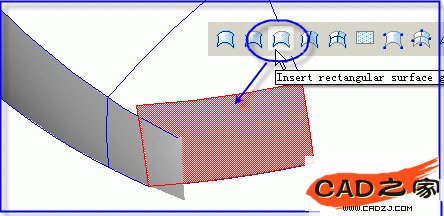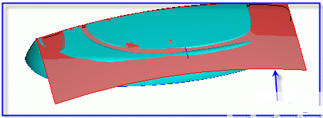 然后創建圍側面,為了觀查方便,我先把頂面的隱藏了,后面的步驟也是這樣,就不作特別說明了。因為側面的變化比較快,所以要適當在中間的部分添加一些控制截面。如下圖的兩個截面就是新添加的,詳細的添加方法看part,同樣用restyle的交線作參考側面用單一圓弧構成。