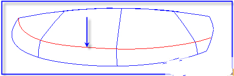 可以看到側面的圓弧的變化比較大并且沒有簡單的規律,所以只好放棄用可變掃出的方法改用混成,為此我們要作出如下圖的連線。