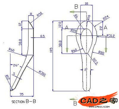 圖1 匙子的二維工程圖
