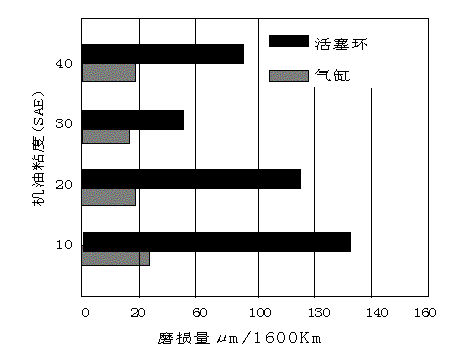圖2 機油粘度與汽缸(活塞環)磨損關系