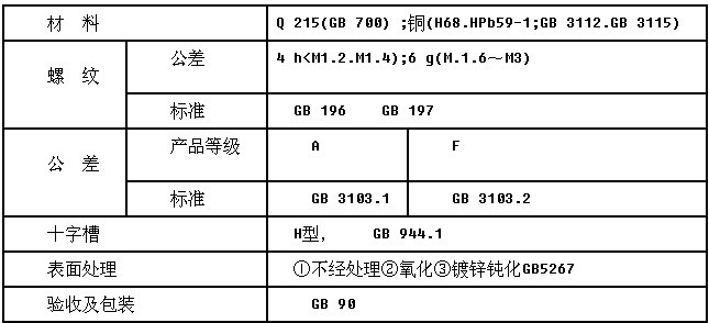 本標準規定了螺紋規格為Ml. 2~M3的A型——十字槽圓柱頭螺釘、B型一~一十字槽沉頭螺釘及